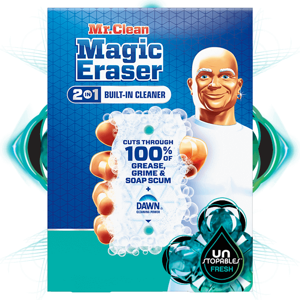 Mr. Clean Magic Eraser 2 in 1 has built-in cleaner and is tailor-made for all the messes your bathroom can throw at it. Just wet, squeeze, and erase bathroom messes with ease—even shaving cream, toothpaste, and makeup. This powerful cleaning sponge is a total bathroom cleaner. It cuts through soap scum on the first swipe, so you can spend less time scrubbing and more time tubbing. It combines Magic Eraser power with active foaming cleansers, making tough bathroom messes in your tub, sink, shower, bathroom floor, and more no big deal. And you’ll love the fresh lemon scent it leaves behind. Add Mr. Clean Magic Eraser to your arsenal of cleaning supplies today!