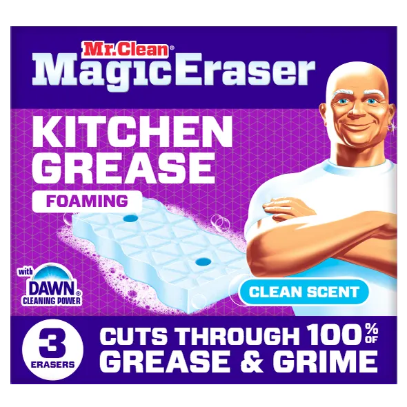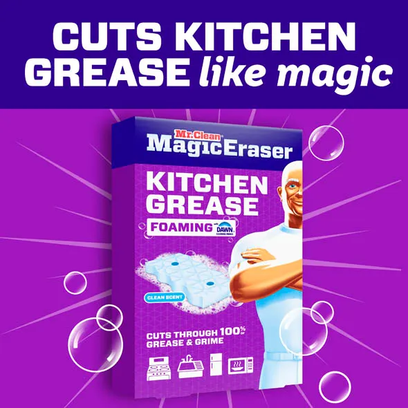 Tackle tough kitchen messes with Mr. Clean Magic Eraser Kitchen Grease Foaming erasers , the only erasers with the cleaning power of Dawn.